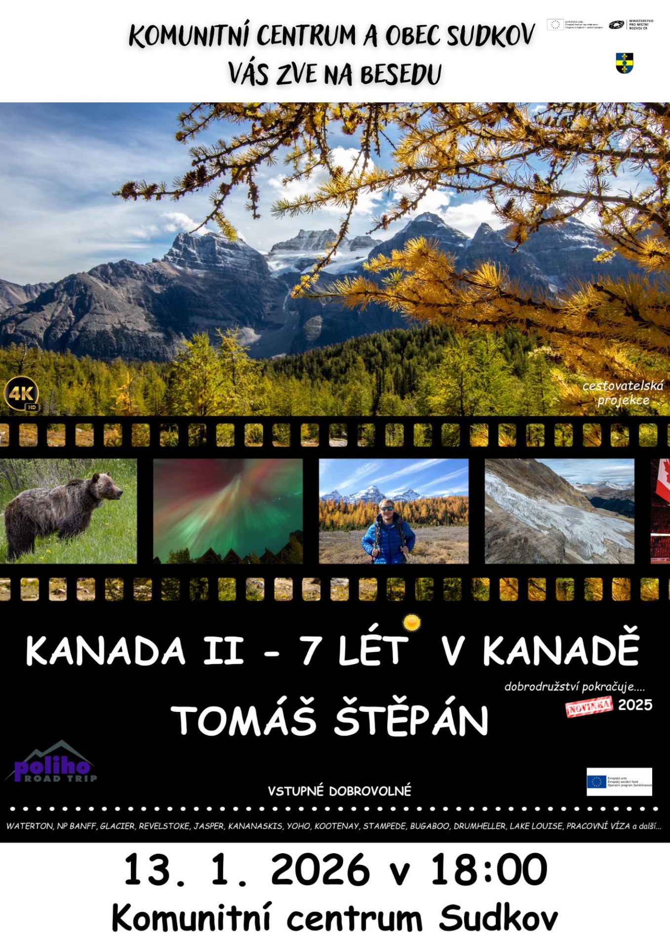 V úterý 13.ledna 2026 v 18.00 hod přivítáme v Komunitním centru pana Tomáše Štěpána s další zajímavou besedou o Kanadě- Kanada II. Srdečně vás zveme a těšíme se.